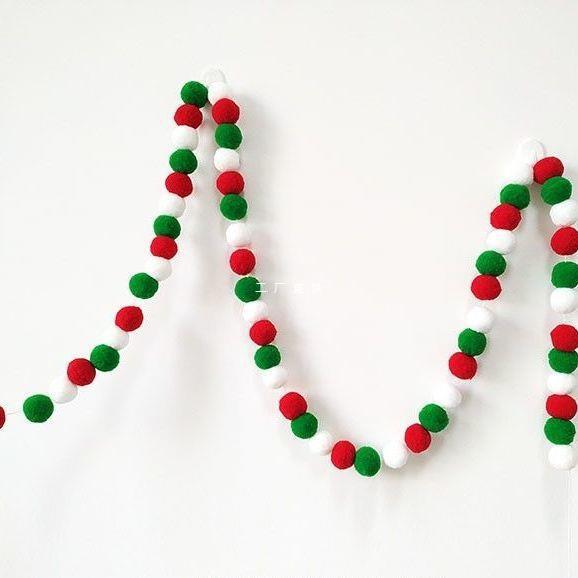 クリスマスの毛玉の飾りは赤と緑と白の毛のボールを飾っています。