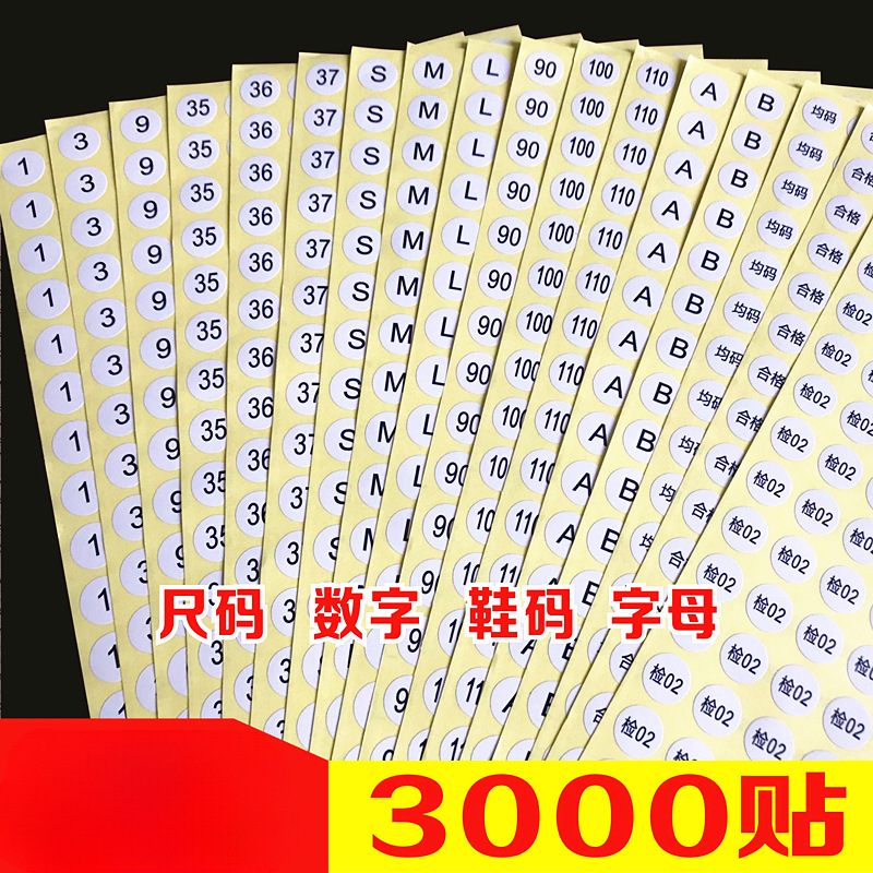デジタル番号ステッカー、粘着文字ステッカー、衣類サイズステッカー、番号、従業員番号、ラウンドラベル