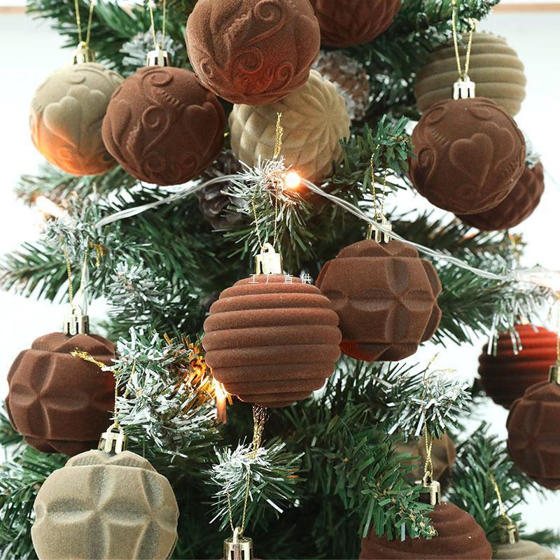 クリスマスツリー装飾ボールクリスマスカラーボール植毛暗赤クリスマスボール真珠DIYペンダントシーン配置