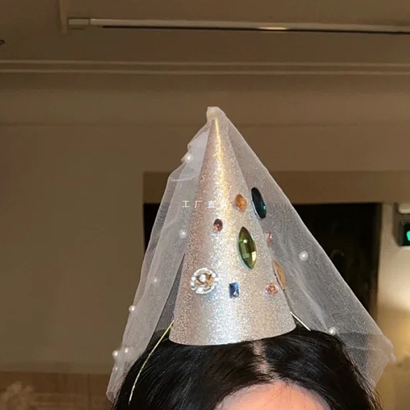 誕生日帽子髪フープ髪飾り糸シーン装飾装飾パーティー女の子子供ネット赤大人写真撮影道具赤ちゃん