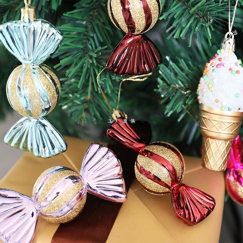 新年のクリスマスツリーの装飾品の小さいキャンデーのアイスクリームのペンダントの彩色のボールの多い大きいプレゼントのピンクのかわいい道具