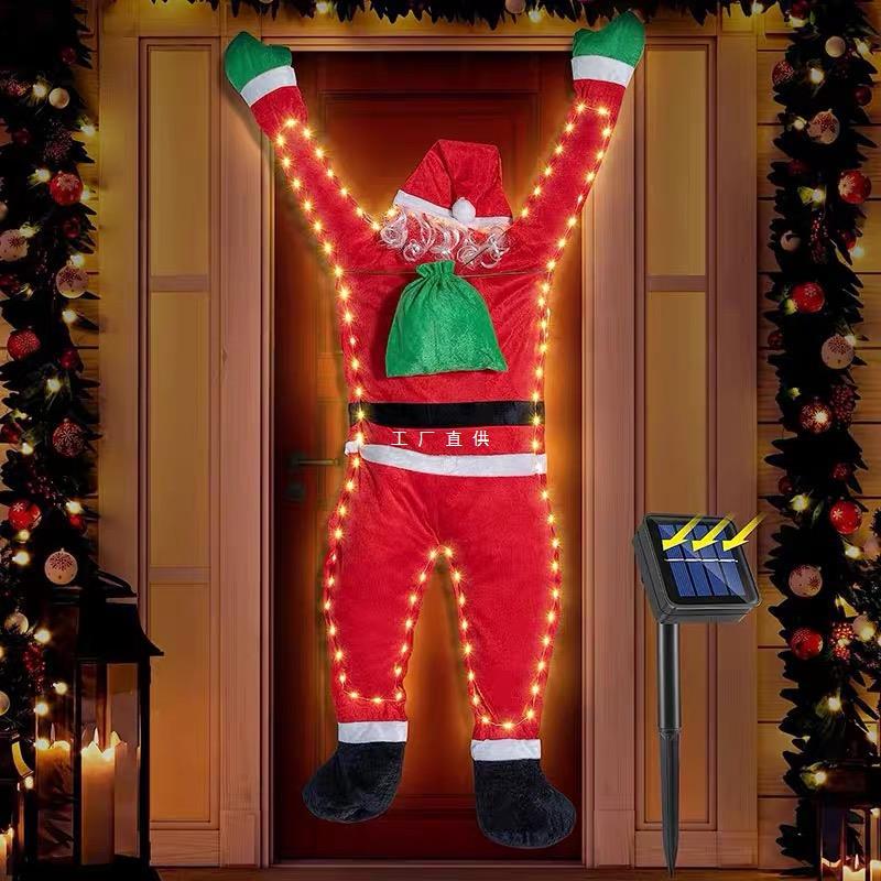2024新型ベルベットサンタクロースが壁に登って服を飾ってプレゼントを飾る祝日プレゼントクリスマスショーウインドー装飾