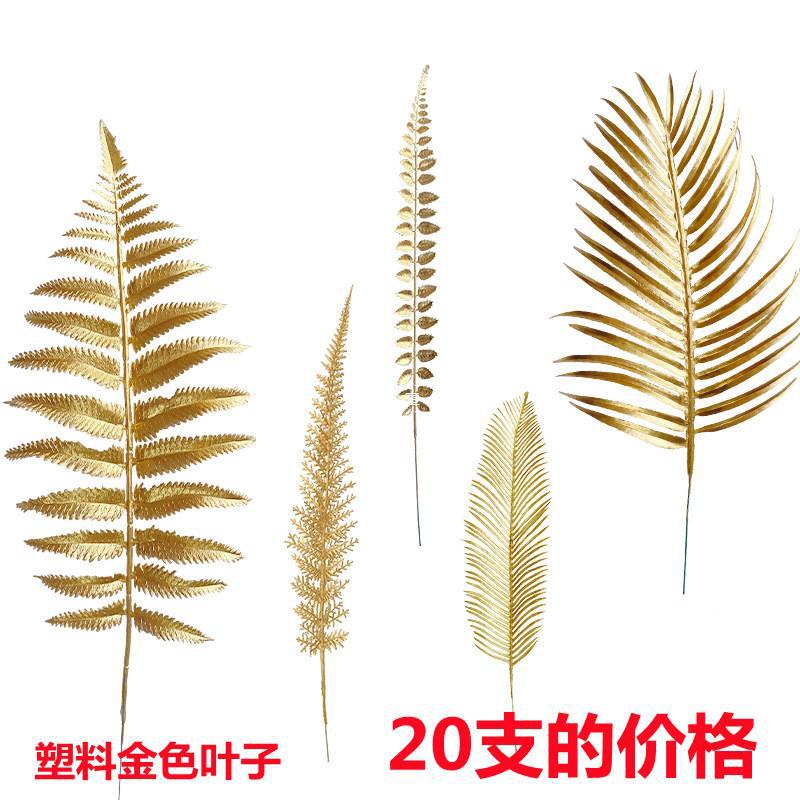 金の葉子の花の金色の色のプラスチックの花の材料の結婚式の講堂は金色の偽の花の尤加利のプラスチックの花を配置します。