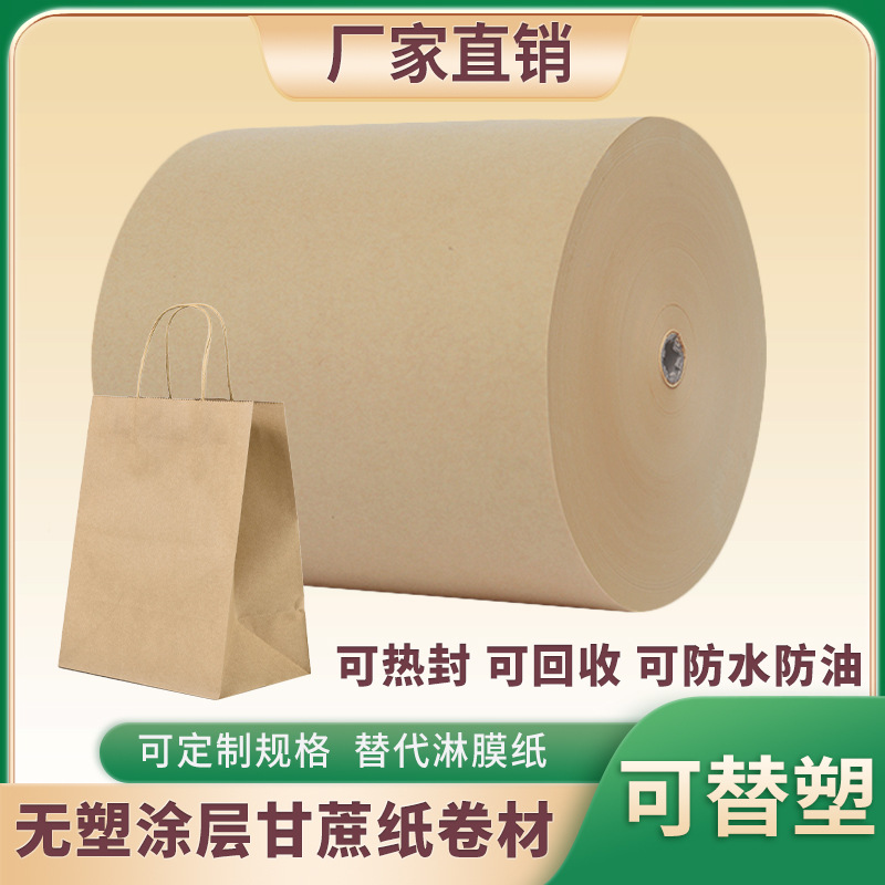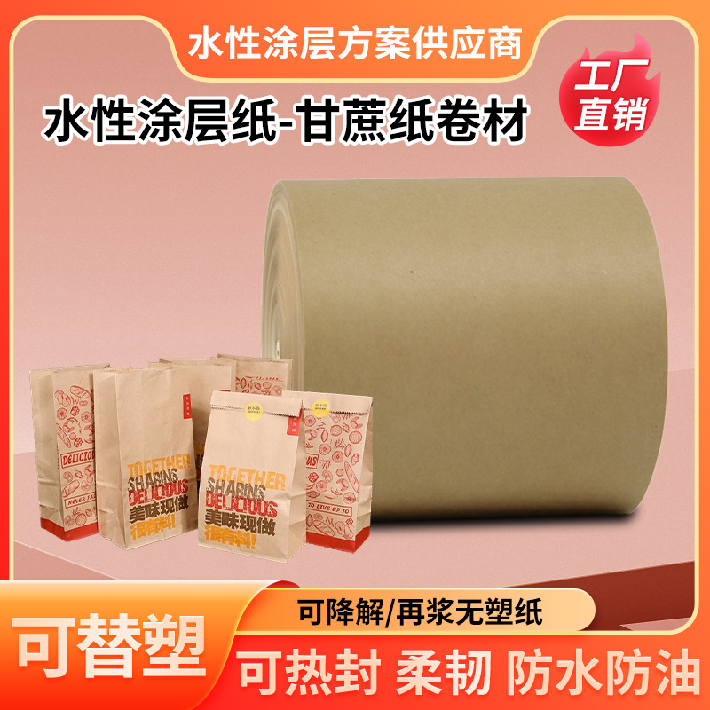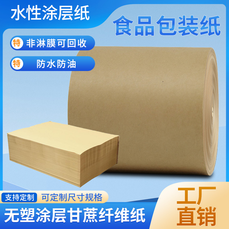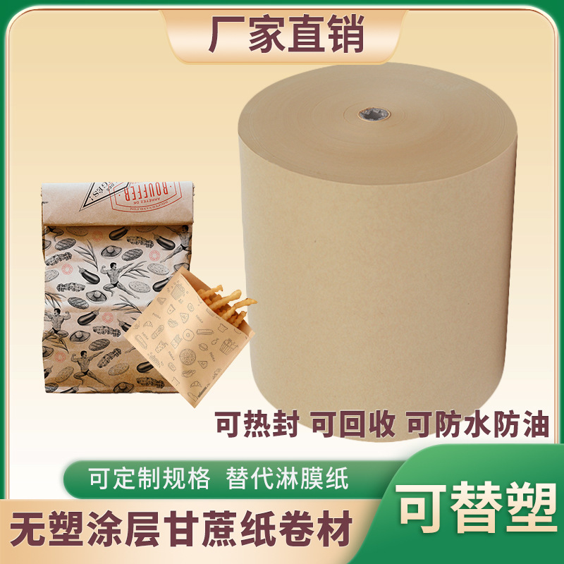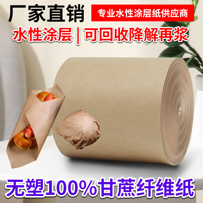 PEなしヒートシール非プラスチック環境保護ハンバーガーポテト包装紙水性コーティングサトウキビパルプ紙コイル250g