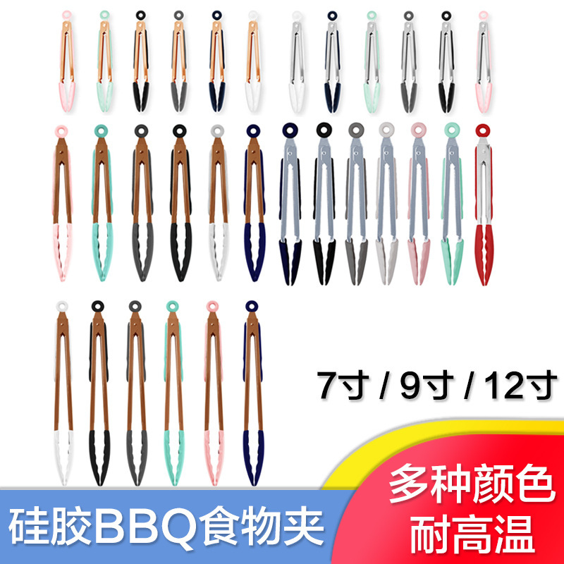 卸売りメッキステンレス9インチシリコン食品クリップパンクリップバーベキューステーキクリップ電気焼き皿梅食品クリップ