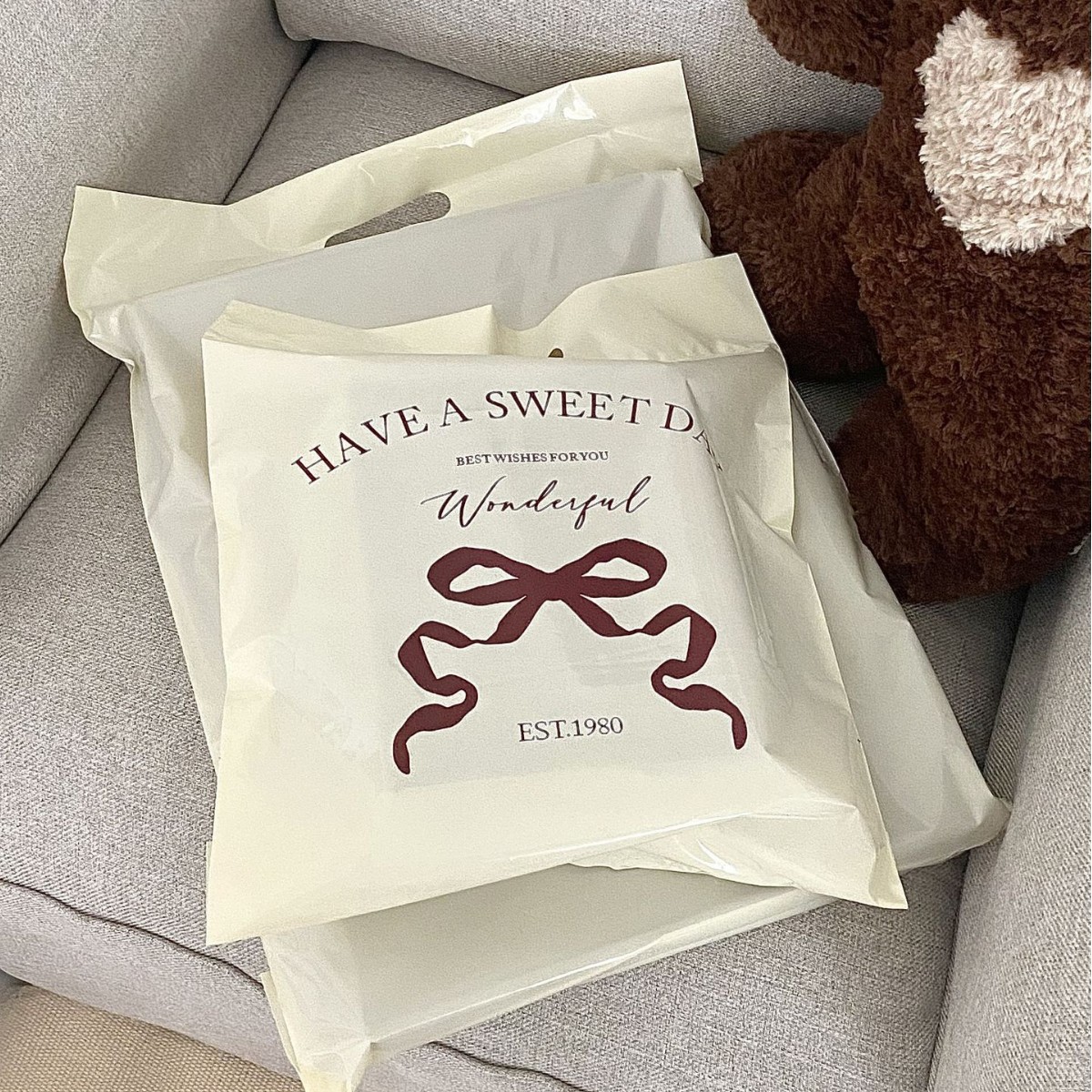 オリジナル蝶結び文字ポータブルエクスプレスバッグ新素材増粘ギフト衣類防水包装 16 シルクビニール袋