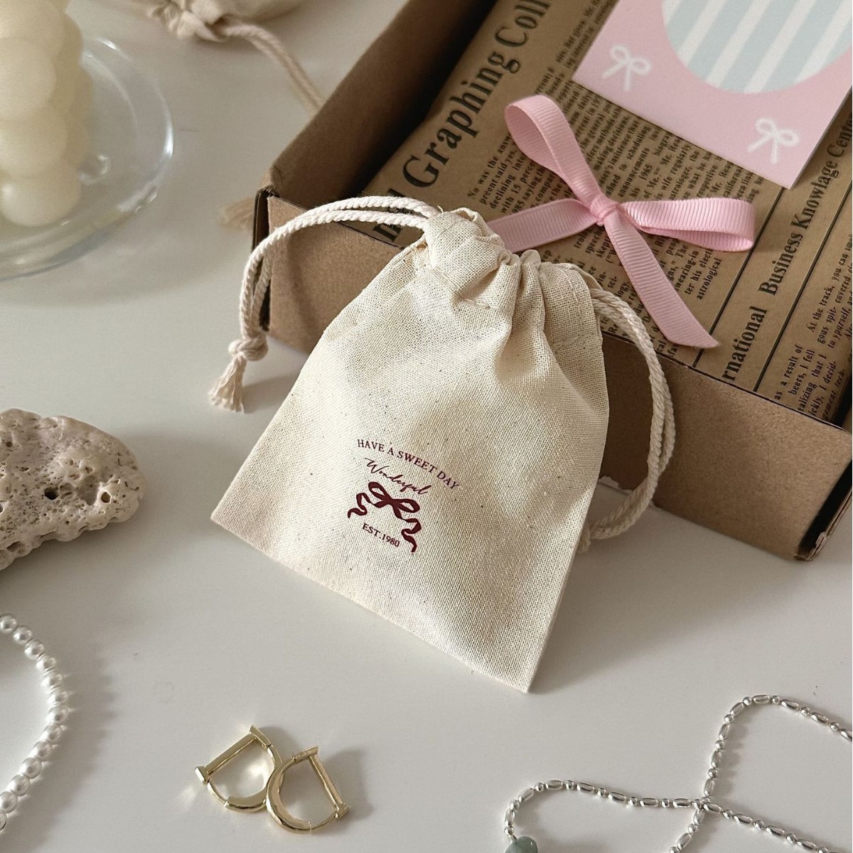 小さい蝶結びのバンド綿麻収納袋insプレゼント水晶ジュエリープレゼント包装袋写真撮影道具