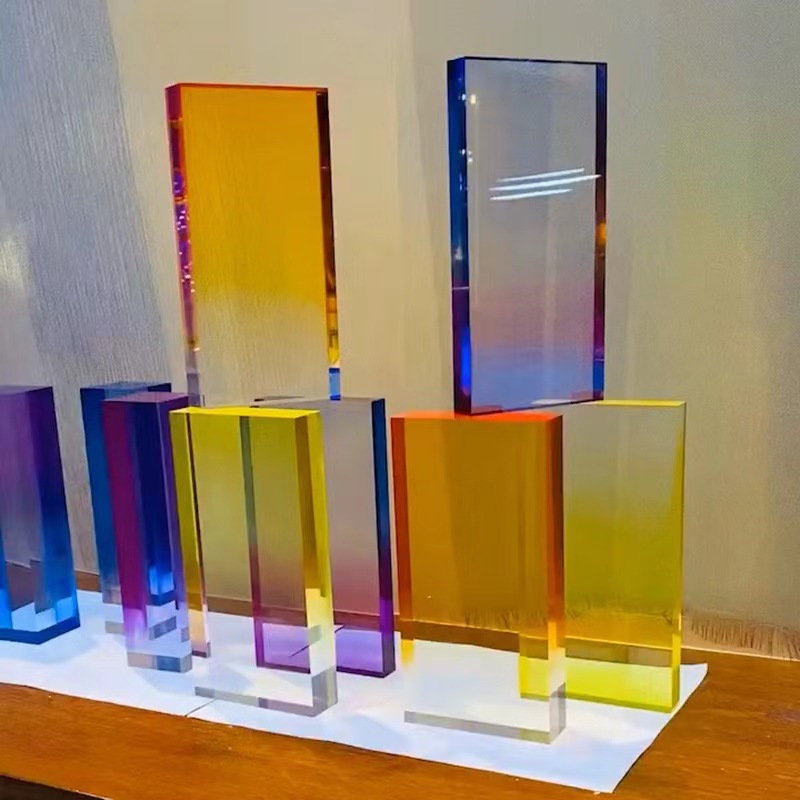 カラフルな半透明アクリル板レーザーファントムグラデーションストライプストーンパターン水の波紋プレキシガラス板加工