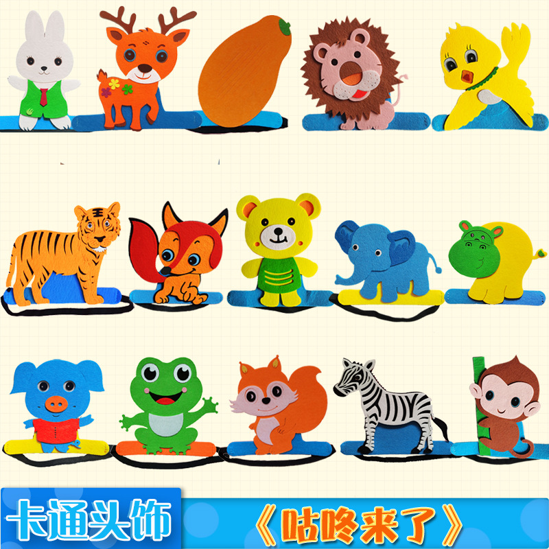 子供の経典のストーリの頭は幼稚園の漫画の動物の帽子の絵本を飾って道具のタイガーのネズミの子猫のウサギを演じます。