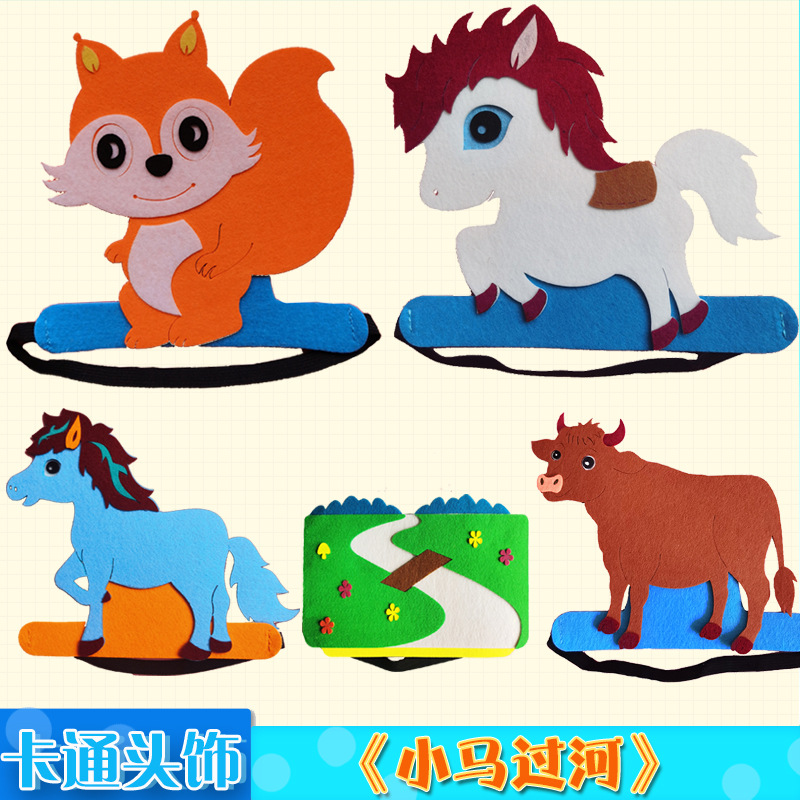 ポニー川を渡る頭飾り道具リス老黄牛漫画帽子川水頭カバー子供時計演出小動物服