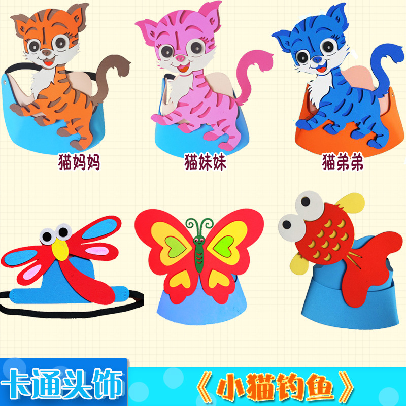 子猫釣り頭飾り道具蝶漫画頭カバートンボ帽子子供時計演出小魚動物帽子服
