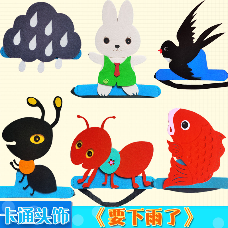 雨が降りそうです。頭飾りの道具です。白兎の帽子です。ツバメの頭カバー子供の舞台は動物の帽子を演じます。