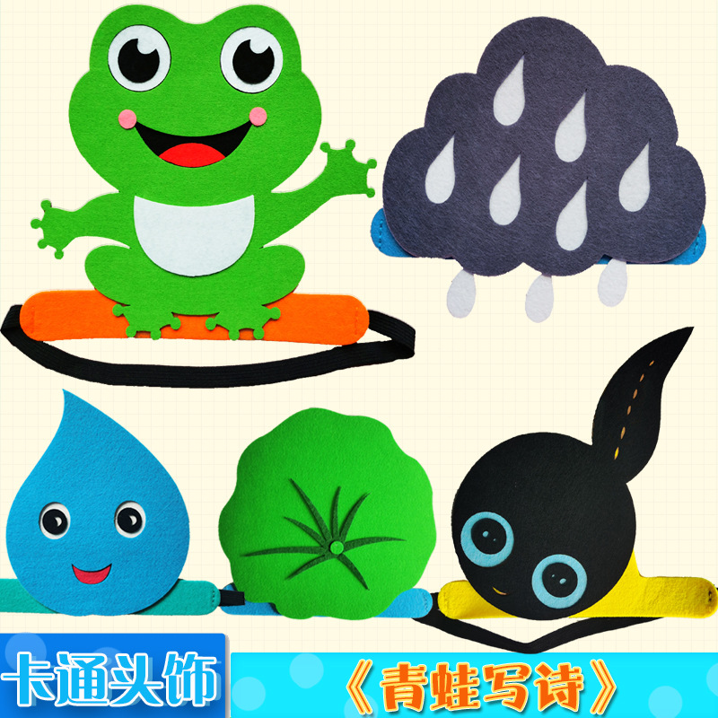 カエルの詩の本文の頭飾りの道具の板書はハスの葉の漫画の帽子のオタマジャクシの頭カバーの子供の公演のオタマジャクシを貼ります。