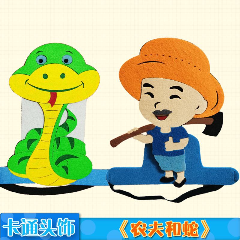 農夫と蛇の頭飾り道具幼稚園の親子活動アニメ動物の帽子子供が衣装を披露します。