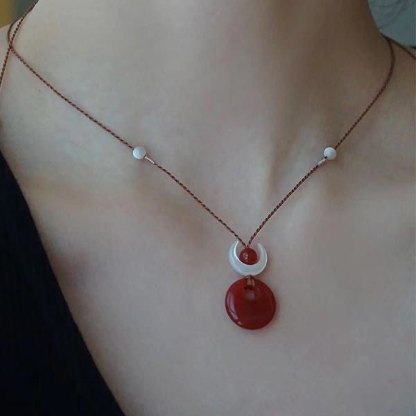 【月昇日没】新中国式の赤い平安ボタンの月のペンダントのネックレスの気質は白くて鎖の鎖の潮を編みます。