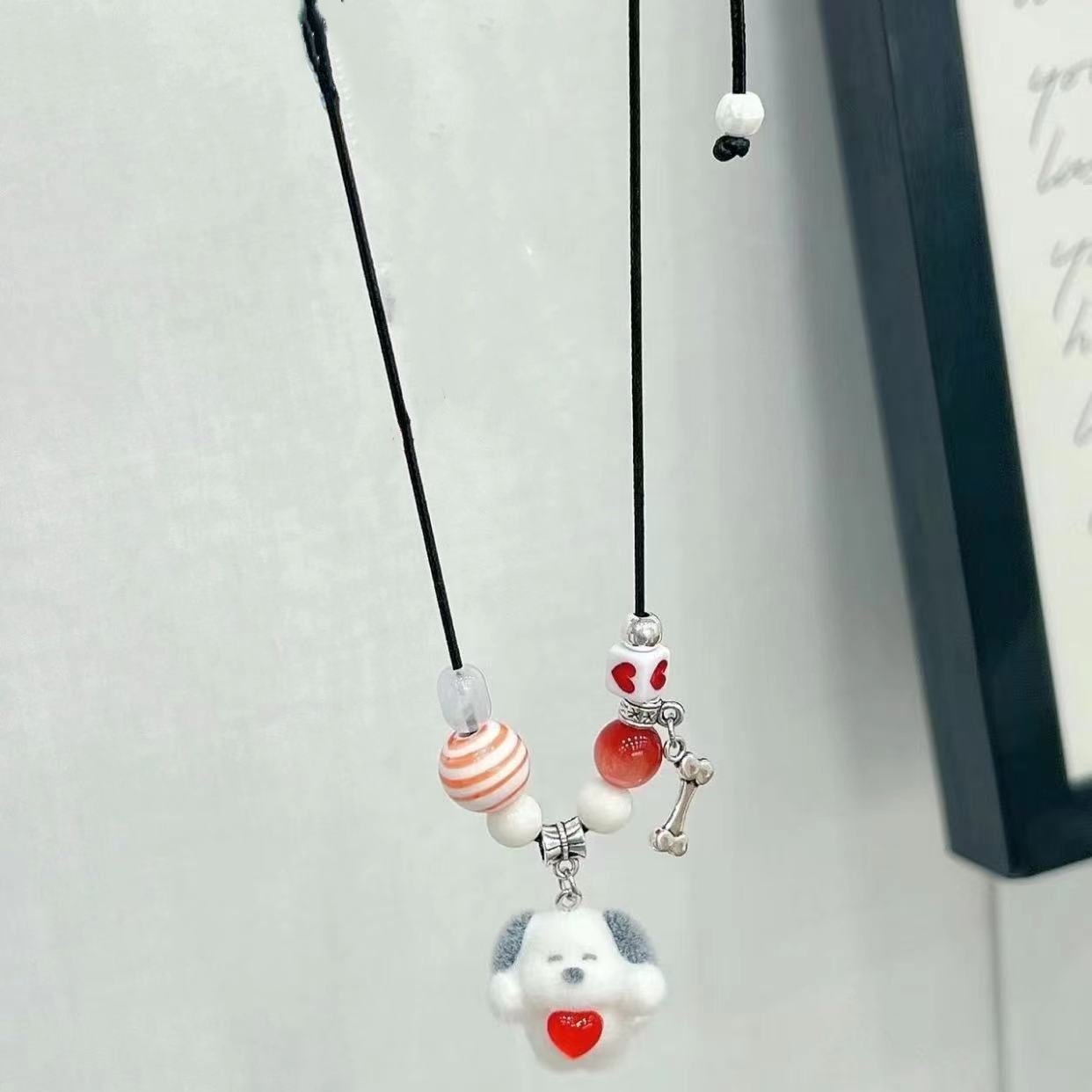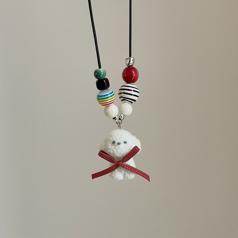 かわいい漫画ベルベット白い蝶ネクタイ子犬ペンダントネックレス子供趣味ファッションカラービーズセーターチェーン潮