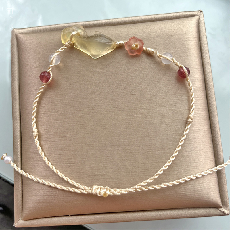 新しい中国風の桃の花の錦鯉はブレスレットを編んで玉の手の縄をまねて引っ張ります。