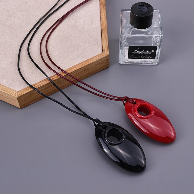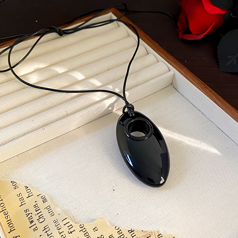 日韓のデザイナーは黒い楕円の長いネックレスを調節できます。