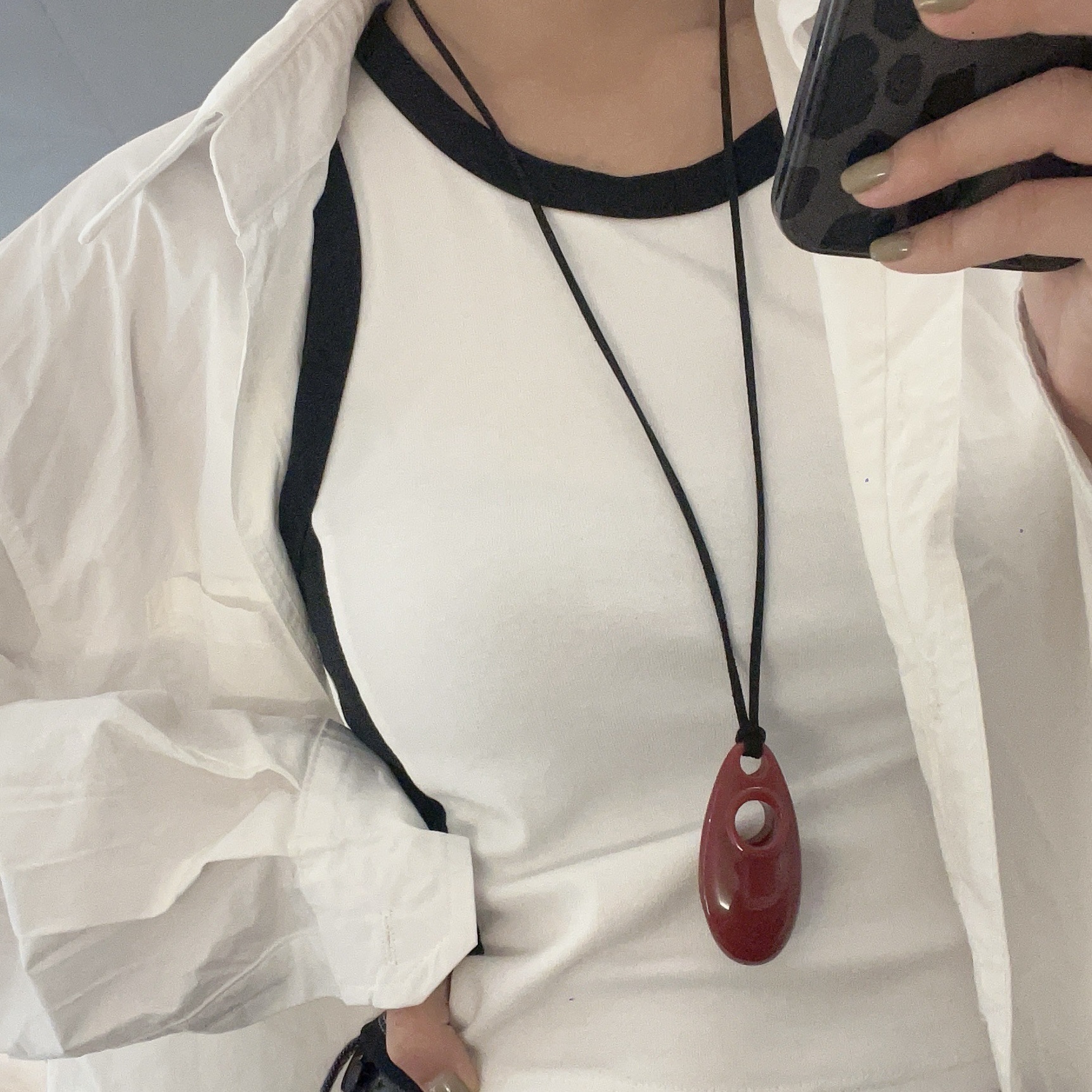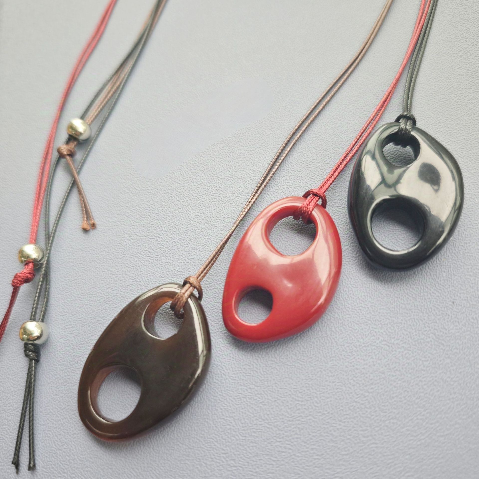 韓国の博主は同じタイプのワインレッドの黒い楕円の長いネックレスの爆発の小さい大衆の高級なアクリルのペンダントのセーターのチェーン