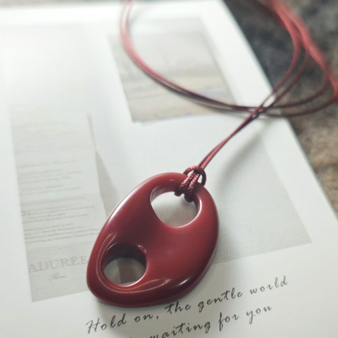 新しい中国式の皮革樹脂のワインレッドの長いタイプの水滴の個性の百合のセーターのチェーンは冷たい風のネックレスのペンダントを組み合わせます。