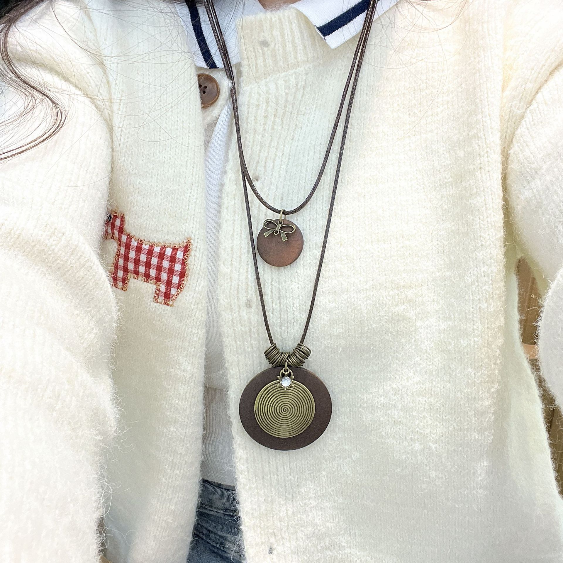 クロスボーダー禅意古銅ねじ円盤ロングタイプの重ね付けネックレス女性レトロ民族ウールチェーンボヘミアンアクセサリー
