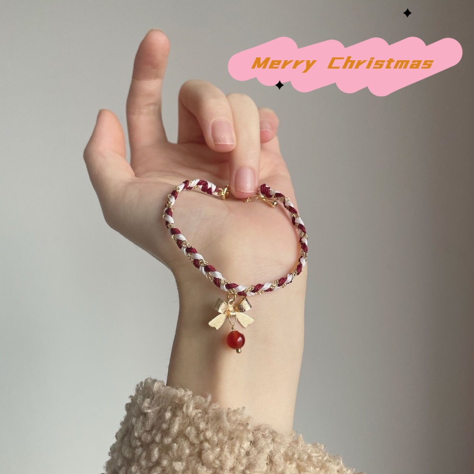 新しい中国式のクリスマスの赤い緑はブレスレットの女性のinsの大衆の設計を編みます。