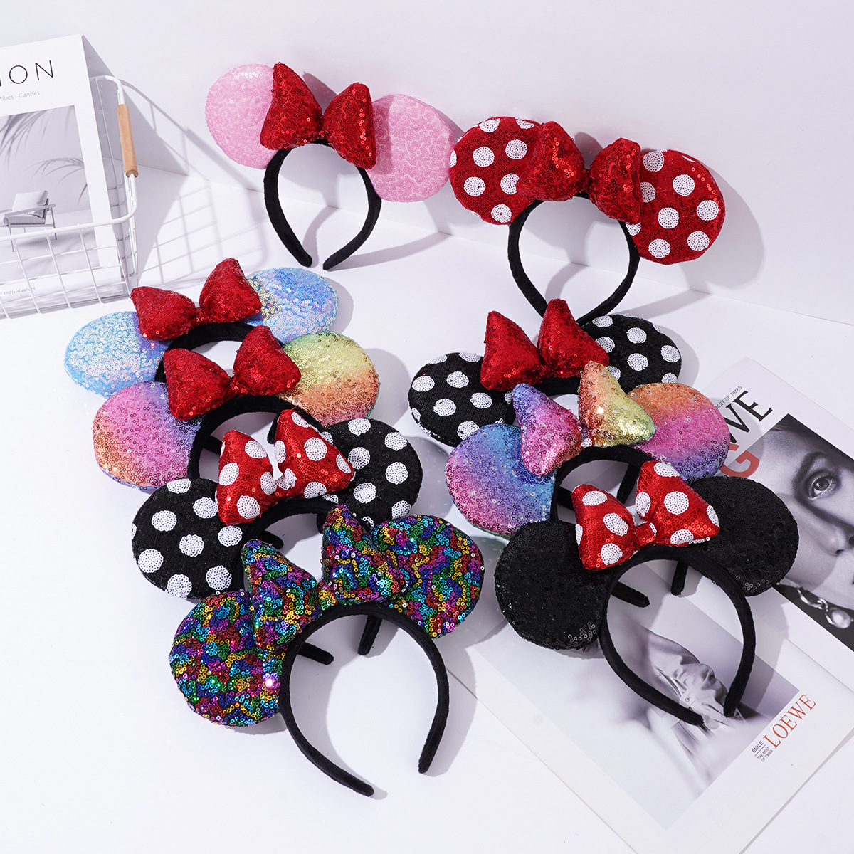 国境を越えた新型アニメのスパンコールリボンのヘアバンド立体3d波点リボン遊園地は髪飾り卸売りをしている