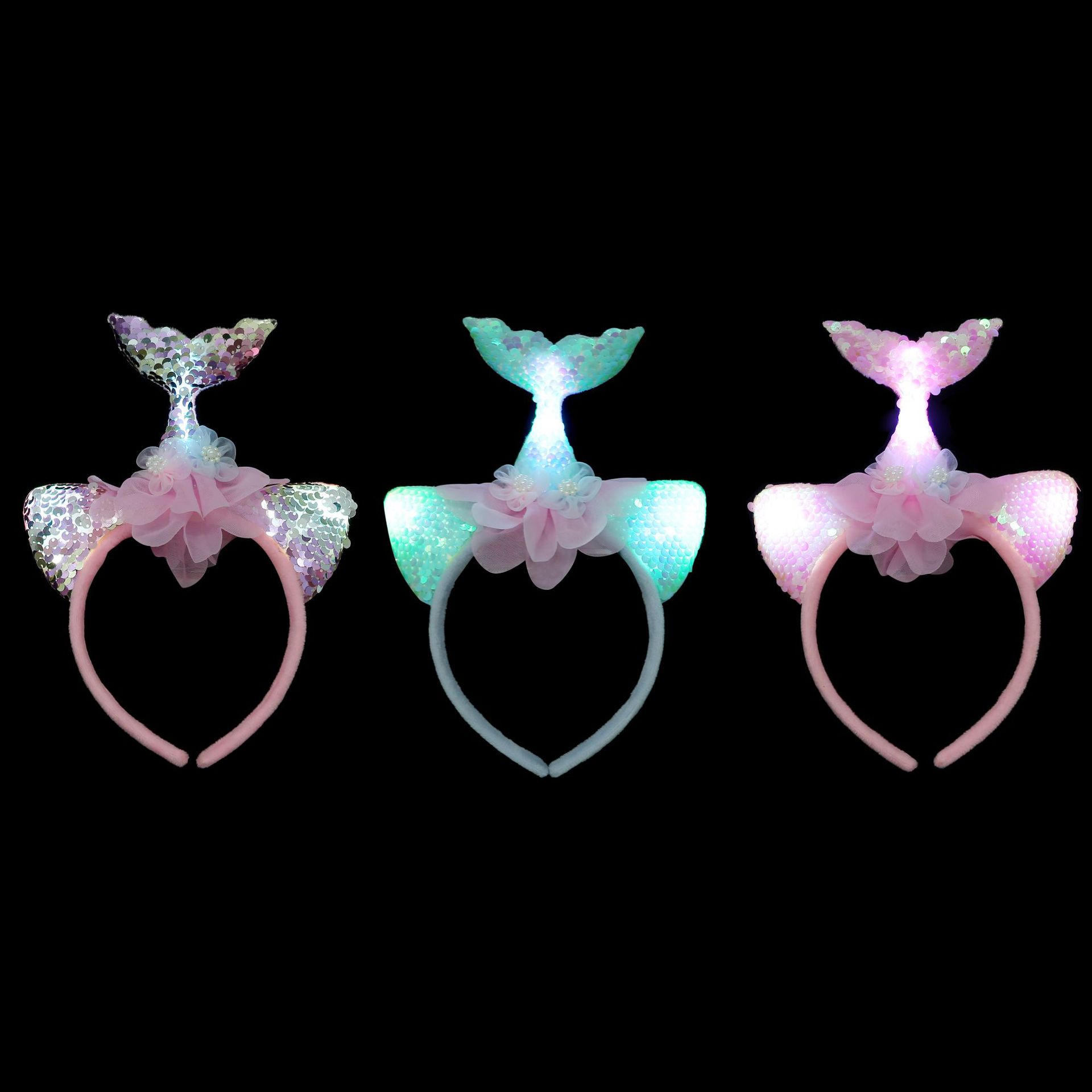 国境を越えたアニメの明るい人魚のカチューシャ遊園地のLEDが明るい魚の尾の発光の頭飾りをひっくり返して萌えの道具を売ります。