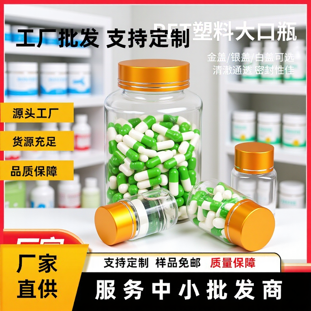 300gグラムmluv金と銀の蓋petペットボトル透明液体瓶大口瓶固体瓶カプセル瓶空瓶