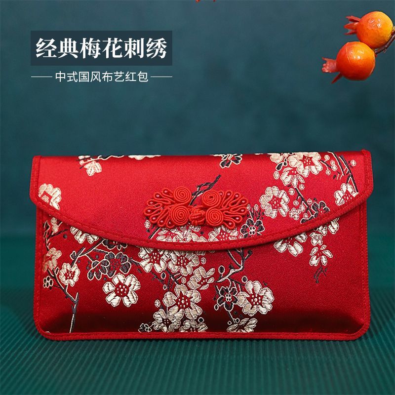 布芸財布万元赤包袋レトロ古風招財刺繍結婚専用利は封国風梅の刺繍である