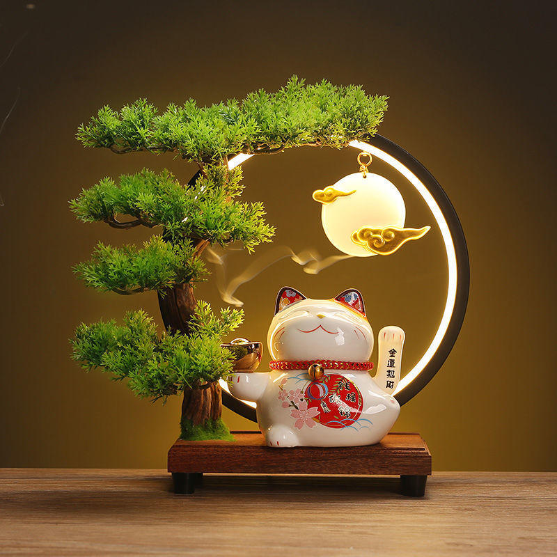 小さいサイズの手は招き猫の明かりの輪を振って財の創意の贈り物を募集します。