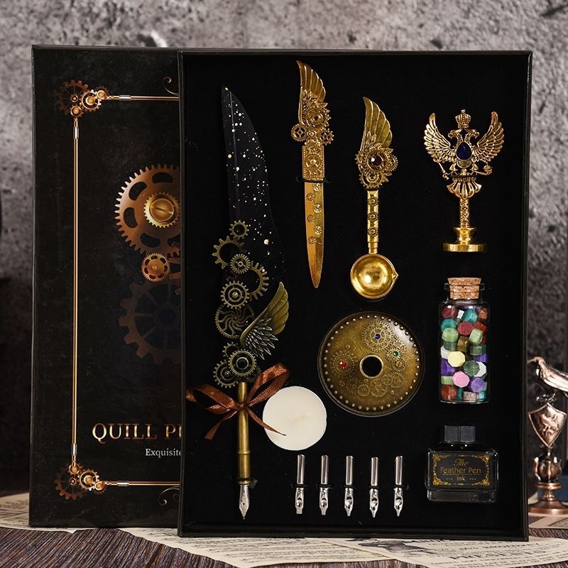 レトロ翼羽ペンセット豪華機械多目的ギフトボックスdiy手帳ビジネスギフトアイデア
