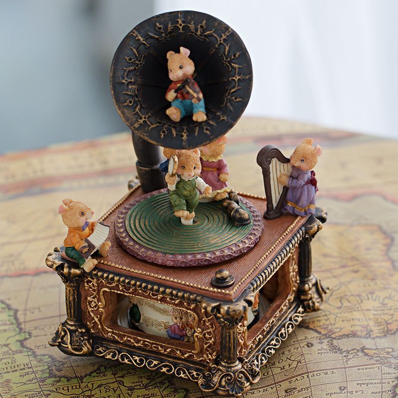 レトロなオルゴール風の誕生日プレゼントは女子児童の親友のカップルの蓄音機にプレゼントします。