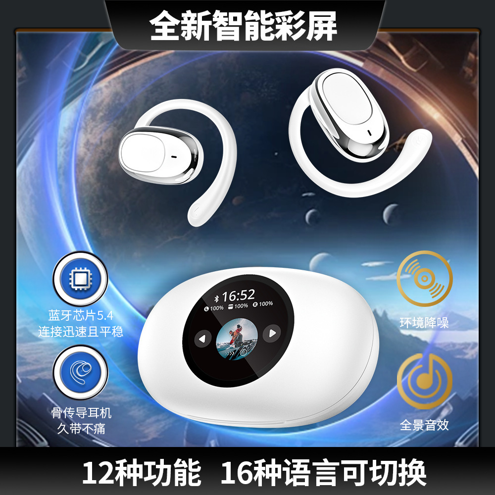 クロスボーダー爆型JM16耳掛け式OWS運動無線bluetoothイヤホンスマートカラースクリーンENCノイズ低減長航続