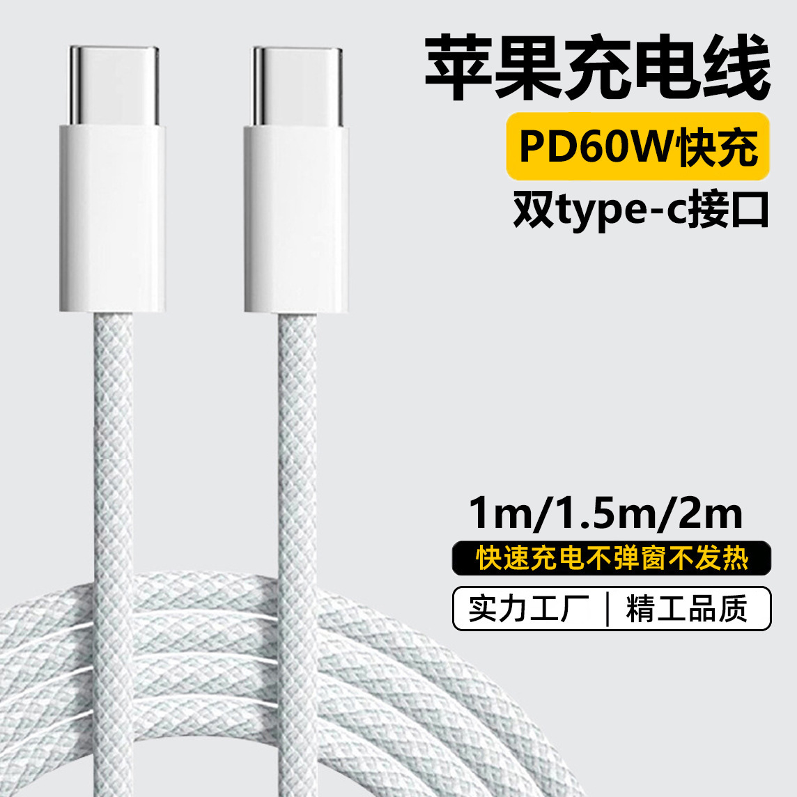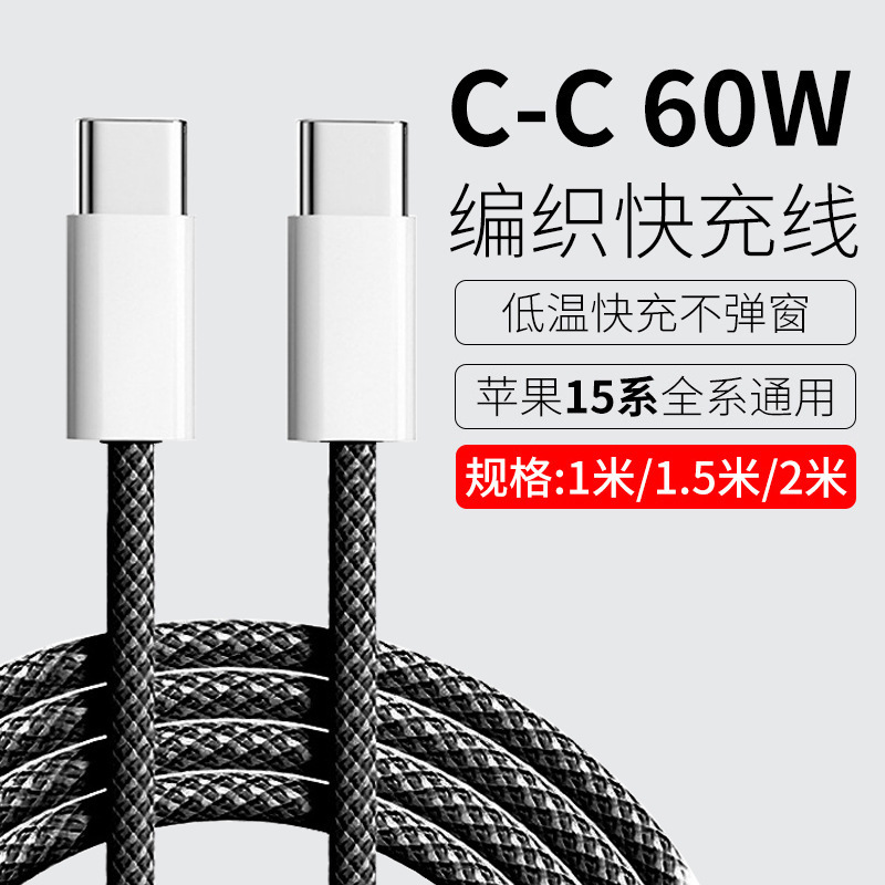 Apple 14/15 携帯電話充電ケーブル PD20W デュアル C ポート PD60W 編組データケーブル iPhone に適しています。