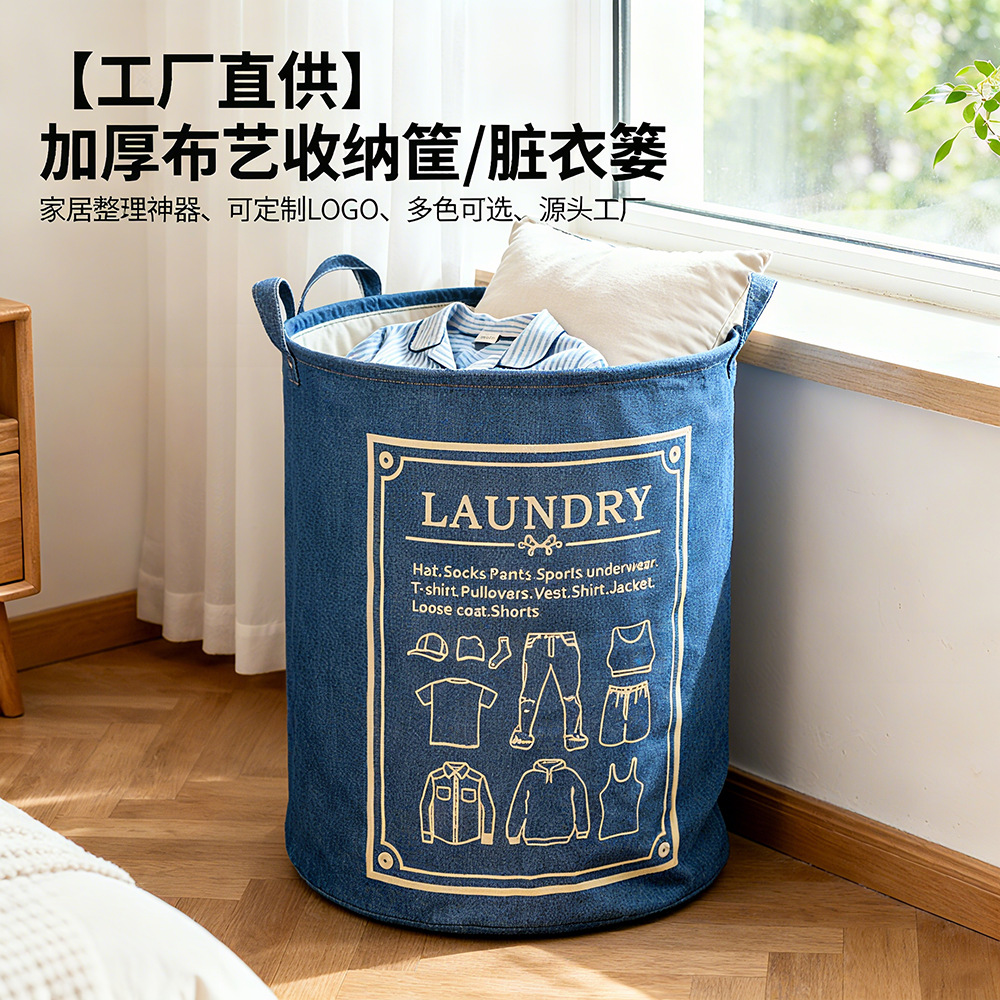 折りたたみ式大容量のデニム製ランドリーバスケット、浴室用衣類収納、汚れた服の収納バスケット