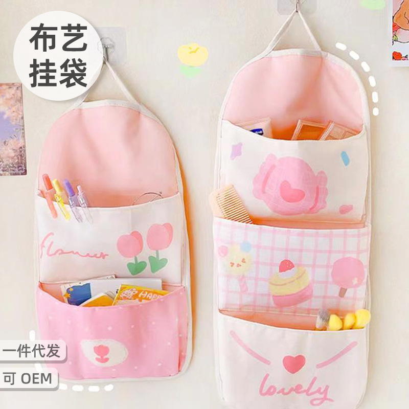 布製収納吊り袋壁掛けドア後壁小さな布袋寮の部屋ベッドサイド吊り下げ壁収納袋