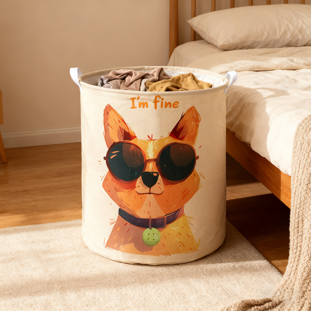 漫画家庭用生地綿とリネンの汚れた衣類バスケット大型折りたたみ防水汚れた衣類収納バスケットおもちゃバスケット収納バケツ