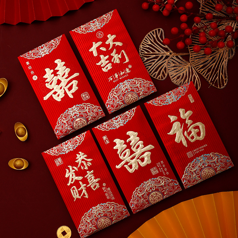 中国風結婚婚約通用金お祝い万元赤包結婚式敬茶口直し赤包喜字利是封