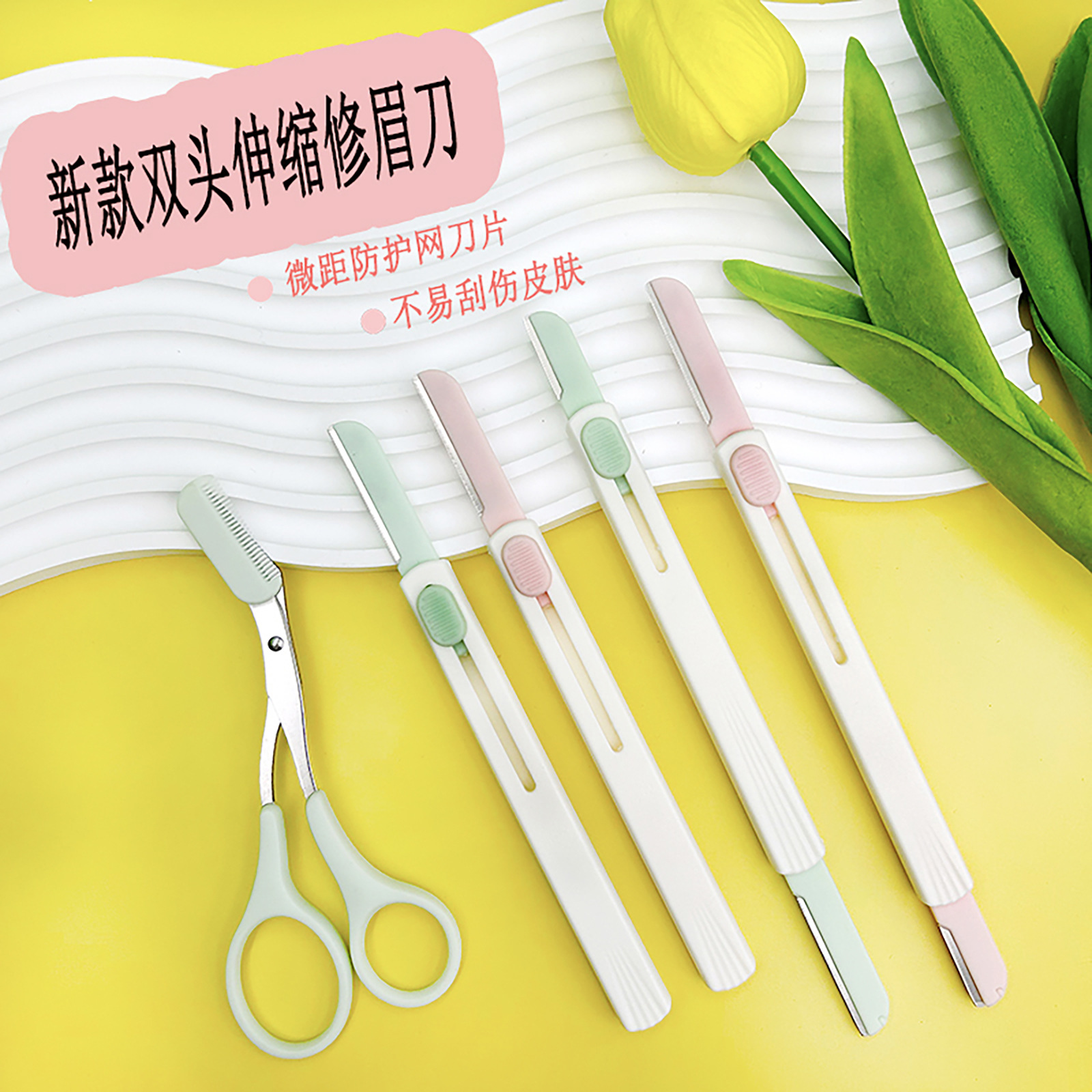 初心者向けの新しい眉毛トリミングセット、ポータブル眉毛トリミングナイフ、眉毛トリミングはさみ、双頭伸縮式眉毛トリミングナイフ