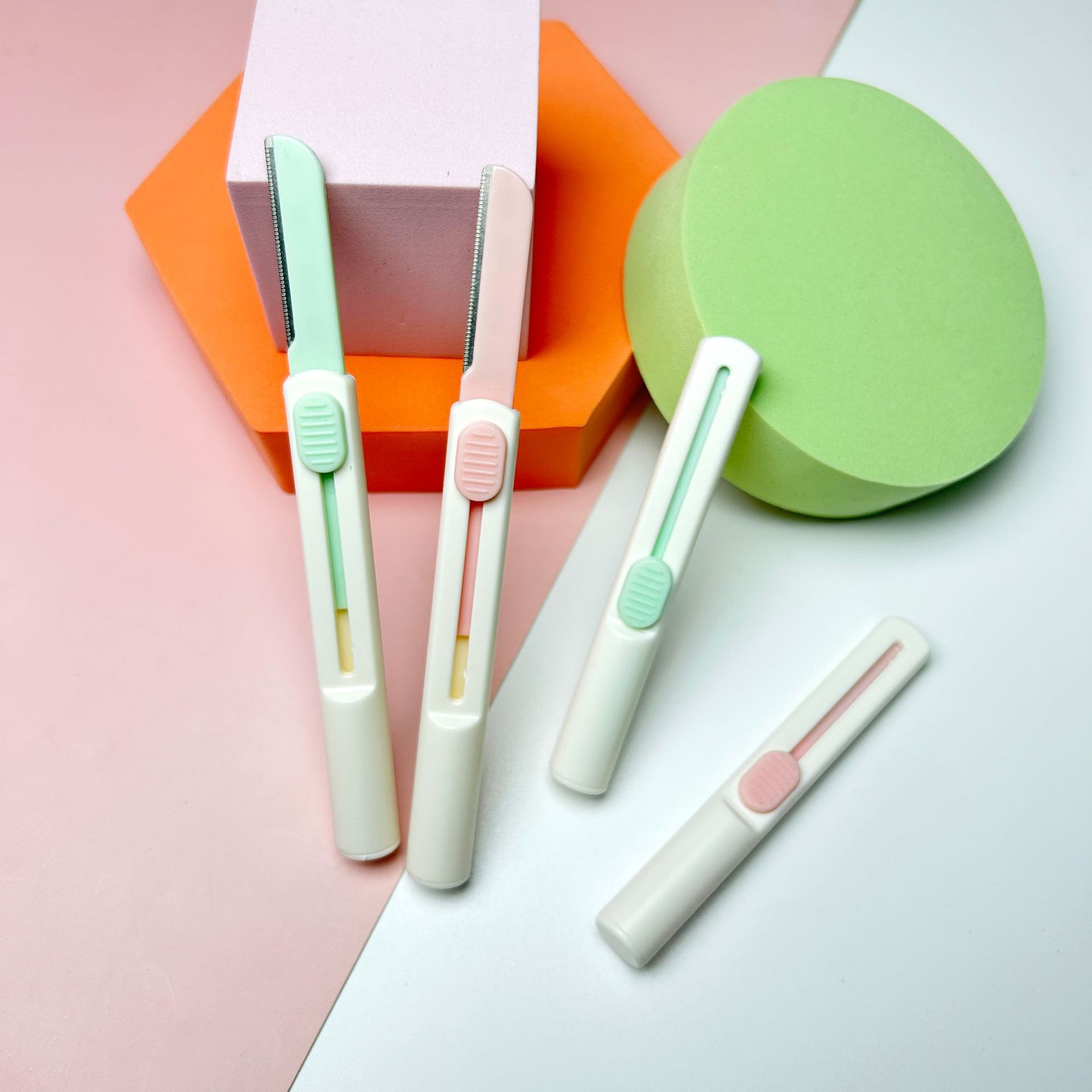 円柱形伸縮式眉修理セットステンレスマクロスクレーパー美化粧ツール安全型折り畳み眉修理ナイフ