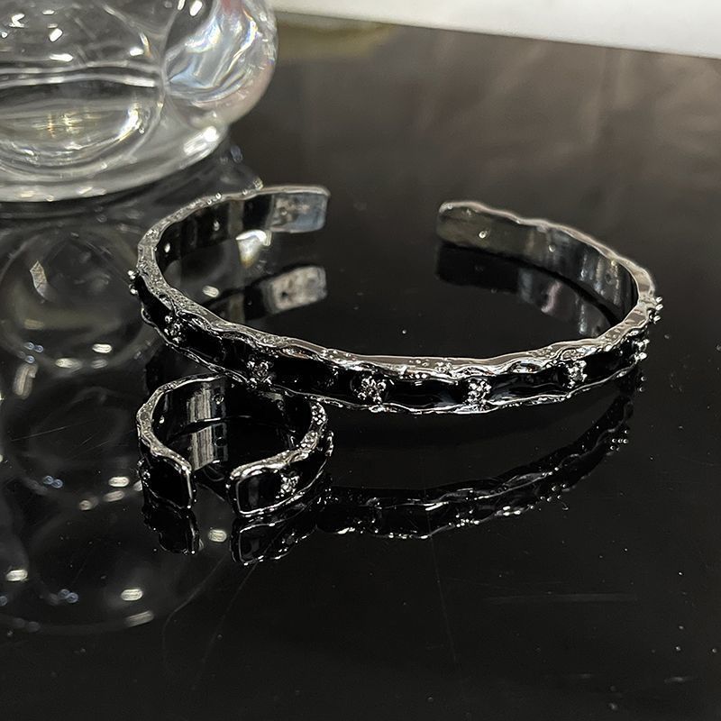 高級感手環エナメルフランス個性黒開口ブレスレット女ins小衆デザイン軽豪華黒ジルコン