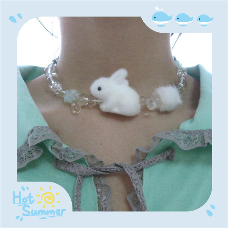 23年の上で新しい高級な草の露のウサギのビーズのネックレスの四つ葉の草の植毛のウサギの毛のボールのかわいいネックレスの首の鎖