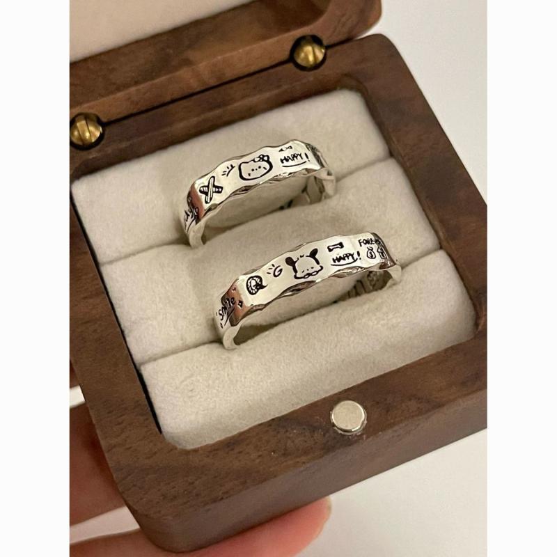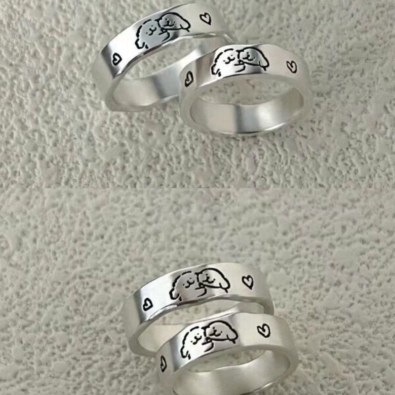 ライン子犬ステッカー手描きスタイリングリングカップルペアリング男女大衆デザインかわいいシンプルなオープンリング