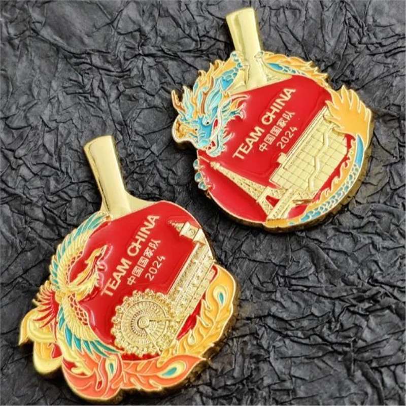 卓球の栄光の標準タイプの龍飛鳳舞のバッジはブローチのピンの磁石の精巧な友達の髪を切ります。