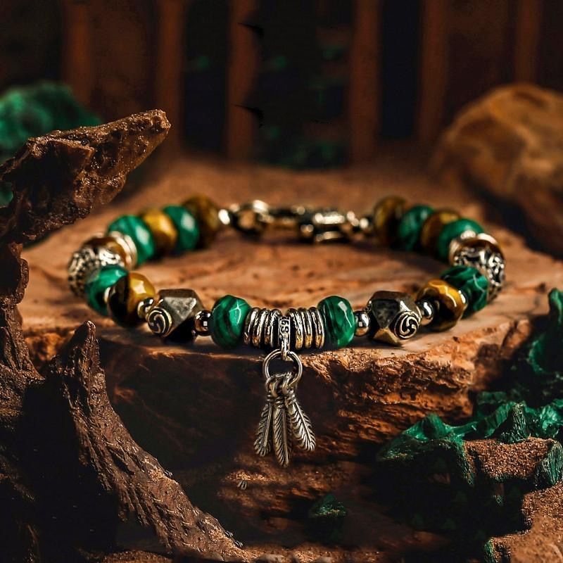 【羽猟】レトロ虎眼石ブレスレット男高級感手串ビーズ誕生日プレゼント個性