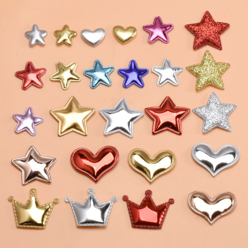 1.3cm金粉不織布パッチ、ハートと五芒星、手作りDIYアクセサリー、子供用ヘアアクセサリー、ヘアピン素材