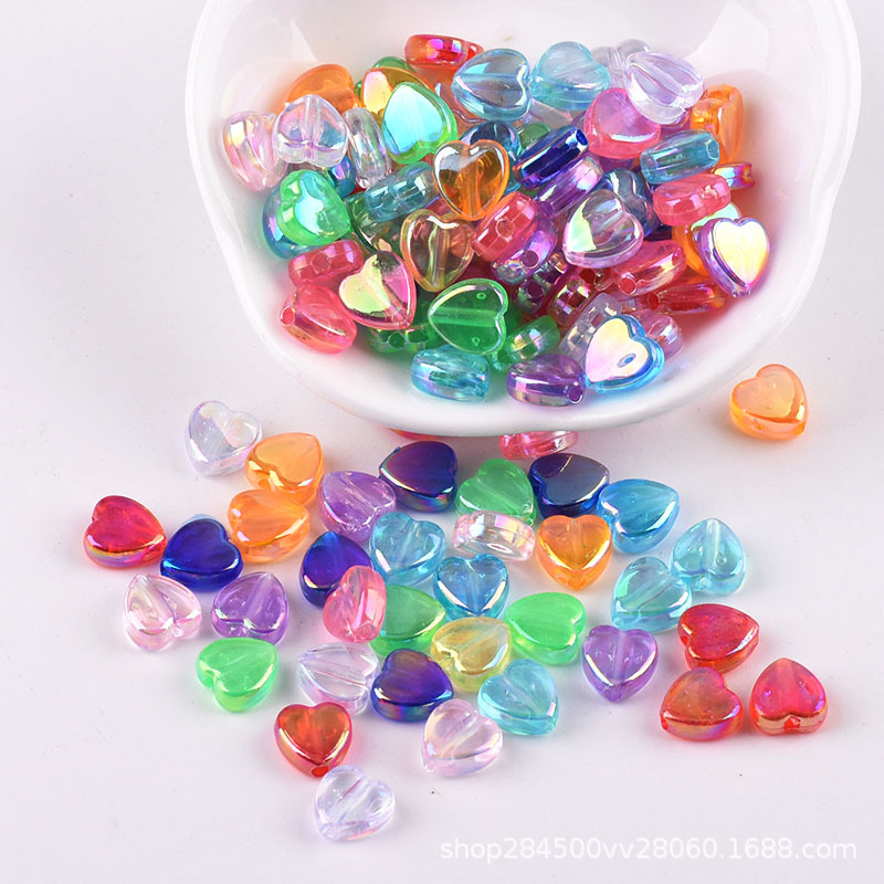 9mmメッキab桃心愛珠透明カラー手作りビーズdiyアクセサリー散珠カーテン補助材料