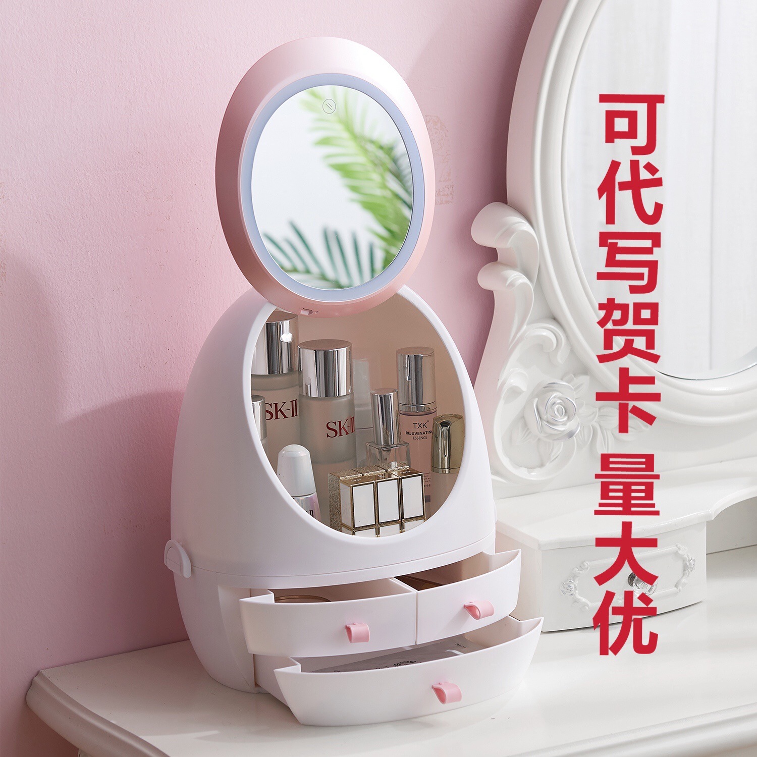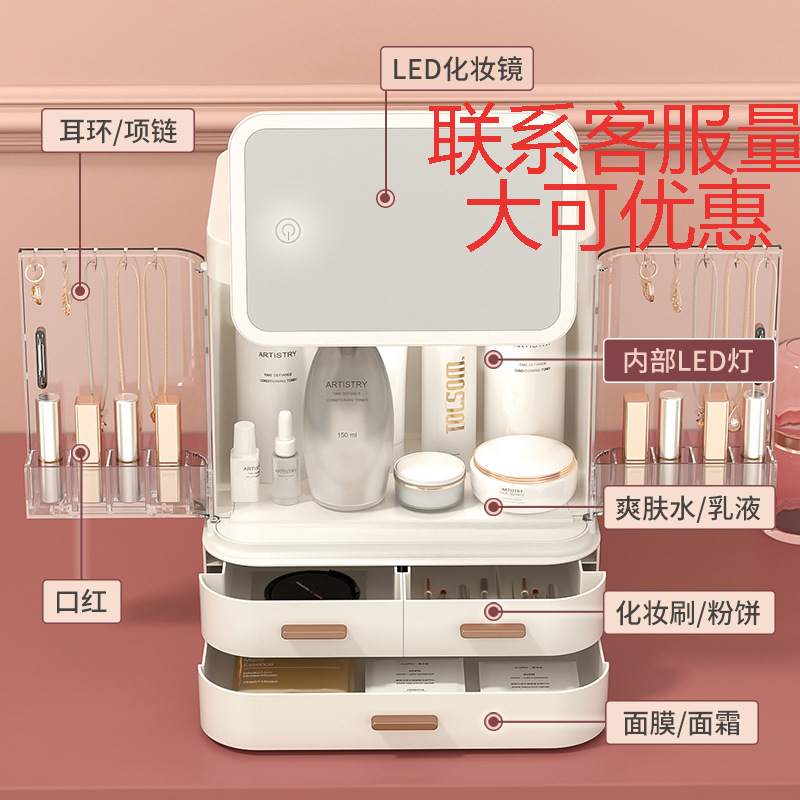 ネットレッド化粧品収納ケース防塵スキンケア化粧台デスクトップledミラー付きアクセサリー一体物棚