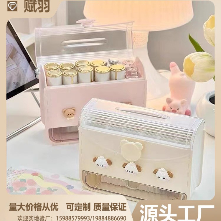 Ins風口紅収納ボックス高颜値デスクトップ収納ボックス蓋付き大容量化粧台分格整理ボックス